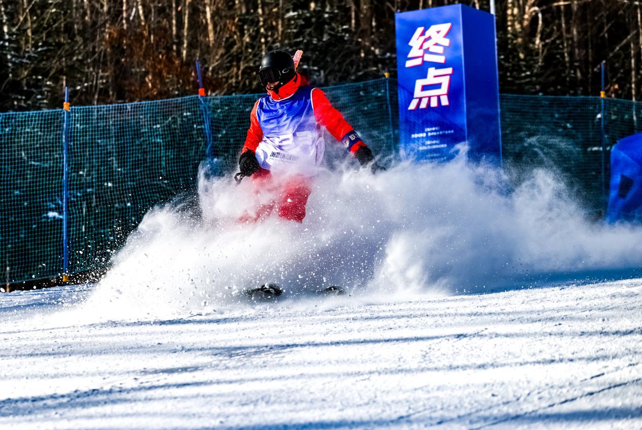 (“冰雪丝路杯”粉雪联赛在中旅松花湖度假区举办期间,一些选手参赛后继续畅滑其他雪道)